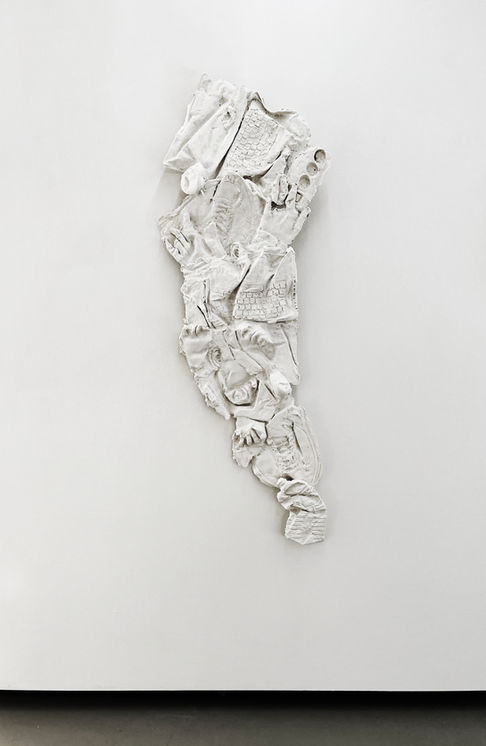 Leftover is a bas-relief, remnants mixed from daily life. Acrylic resin, acrylic paint, 40 x 120 cm